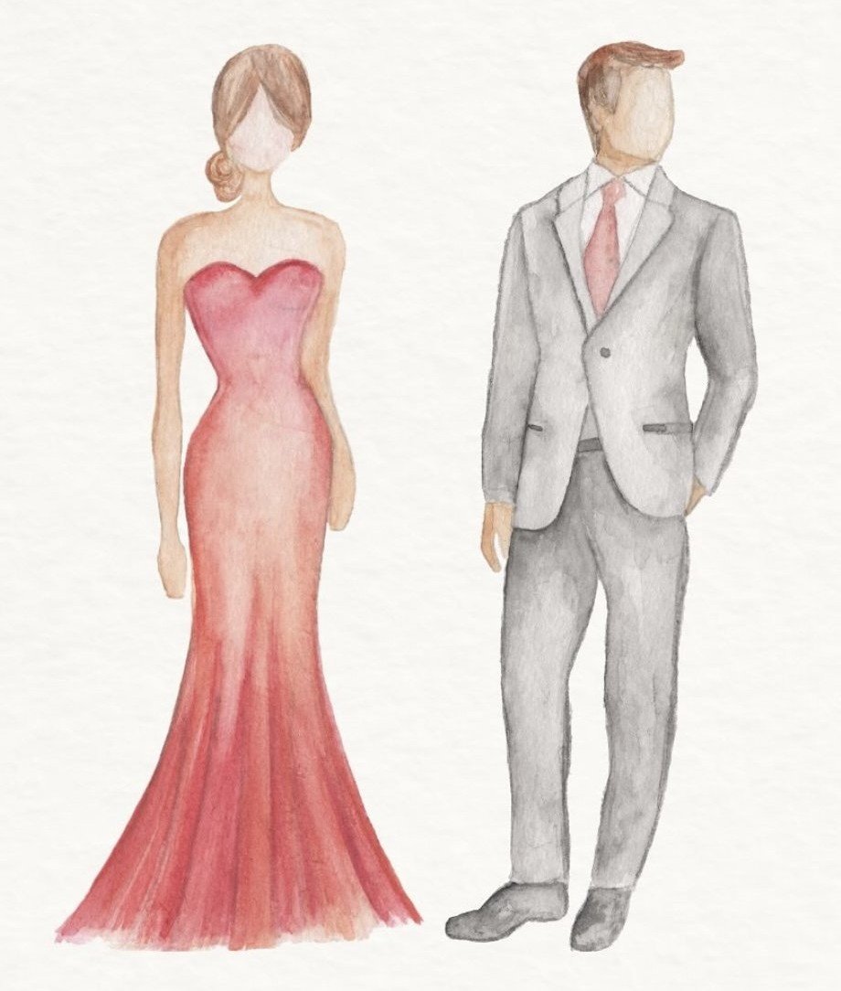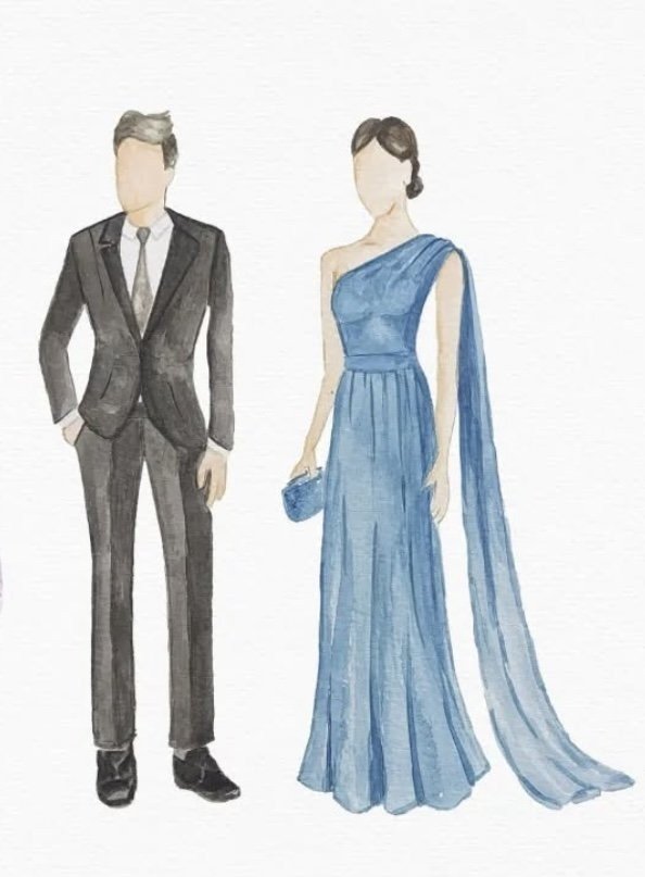 para as mulheres, um vestido longo e, para os homens, terno e gravata.